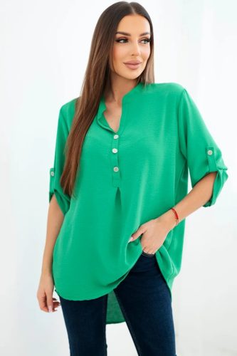 Laza fazonú blúz gombos nyakkal – hosszított hátrésszel