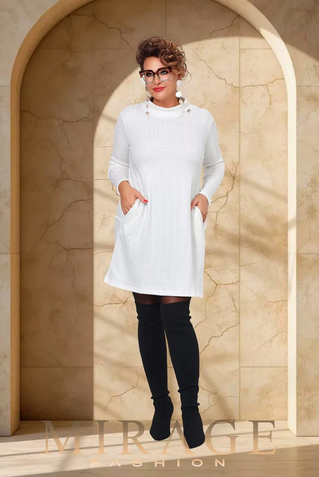 Mirage Tax kötött ruha, fehér
