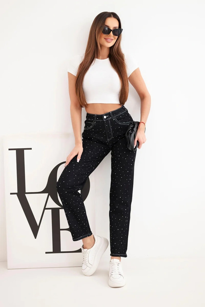 Glam fit farmernadrág, fekete strasszokkal S