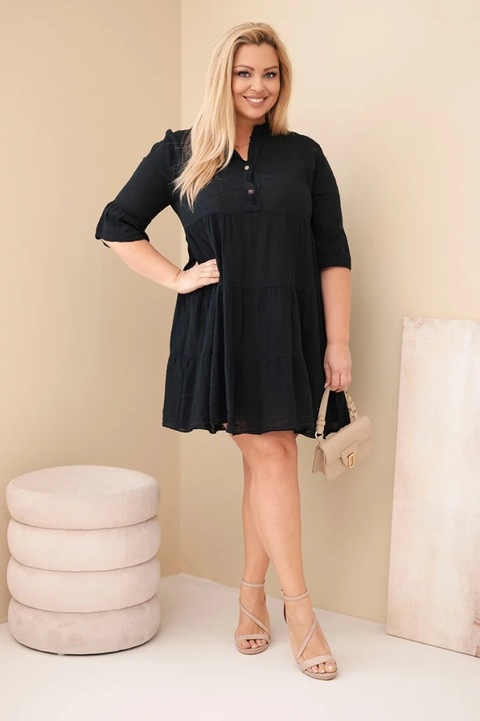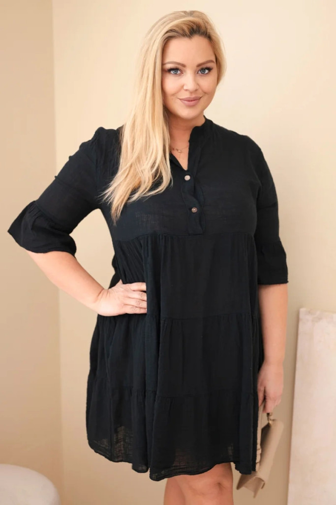 A gombos nyakrész praktikus és elegáns, így a ruha egyszerre kényelmes és csinos.