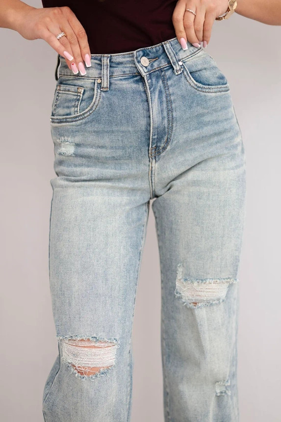A világos kék mosás és a térdnél elhelyezett szaggatott részletek vagány, mégis nőies hatást keltenek.