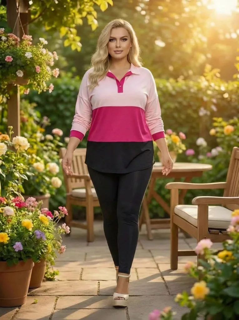 Fashion by Nono Brigitta tunika, rózsaszín-pink-fekete XL méretben