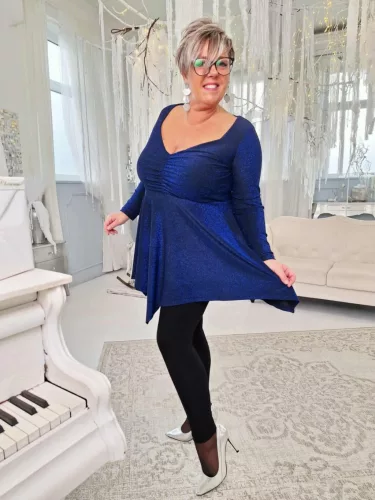 Fashion by Nono Dália felső, kék lurex 3XL méretben